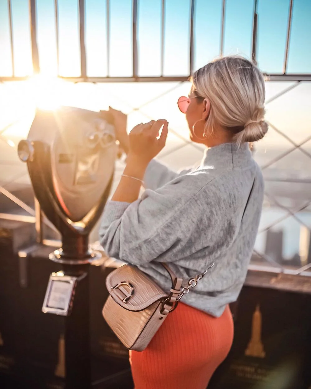 This was an extremely cool opportunity because we actually got reached out to by the Empire State Building (getting that email.. like I am sorry WHAT haha?!) to get a tour of the building and see the views from their highest viewing deck. The two slots they offered us were either in the afternoon right when we had a meeting, or a 6am sunrise viewing. Initially I was like umm am I even going to be able to get UP that early haha!! But I am SO glad that we did & honestly would pay to do it again and again and recommend this to everyone traveling to NYC. The views when you first step outside and see the sun juuust start to peek up were unreal. I kept saying over and over, “I have never seen a sunrise like this” because it was truly amazing and beautiful. As the sun started to come up even higher it started to warm up a bit (it was much colder than I thought it would be) and the light touching all of the massive buildings everywhere was incredible. Never have I ever seen views like that, and I truly think it is one amazing experience and way to see the city in a new light!